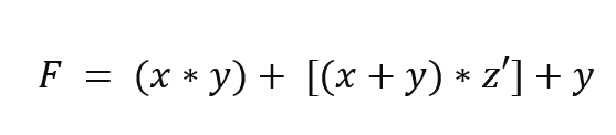 Como se puede observar en el diagrama anterior, se utilizaron 3 compuertas OR, 2 compuertas AND y una compuerta NOT, recordando que una compuerta OR realiza una operación aritmética de suma, la compuerta AND realiza una multiplicación y la NOT es un inversor de valores, su tabla de verdad se vería de la siguiente manera: