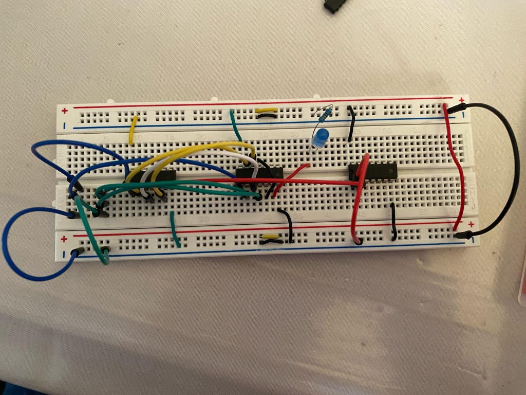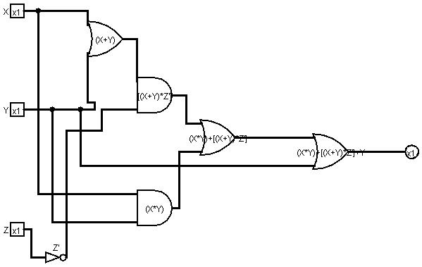Al igual que en el otro ejemplo se realizó el armado del circuito con las mismas compuertas (AND, OR, NOT), obteniendo lo siguiente: